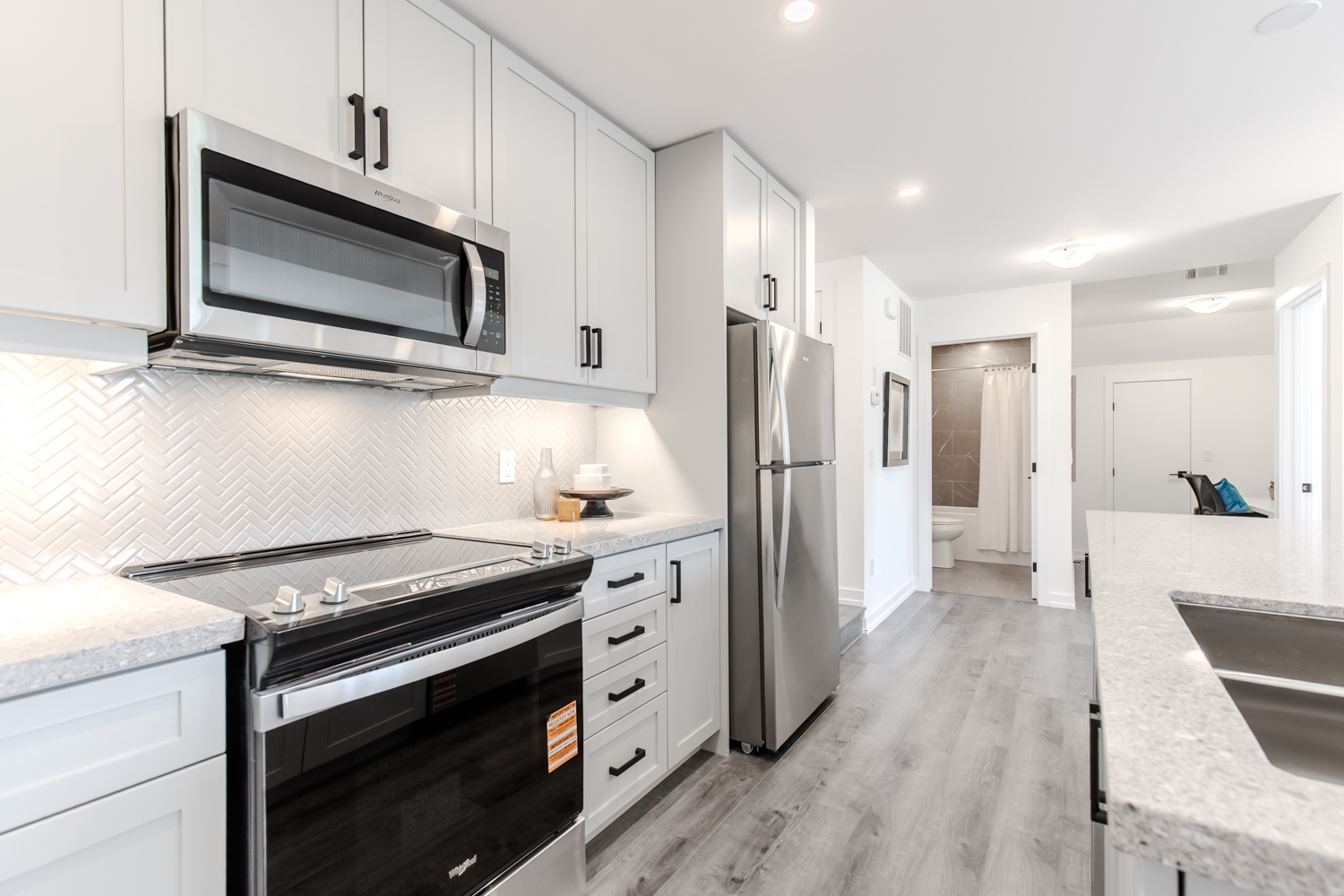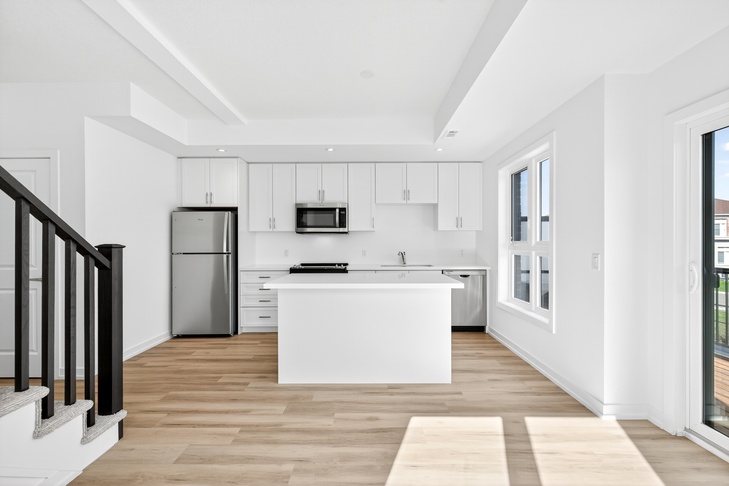 This spacious 3-bedroom, 2.5-bathroom end unit showcases one of the larger floorplans, offering 1,484 sq. ft. of contemporary living. One of the few homes with a front entrance that walks out to the charming parkette, it perfectly blends comfort and style. Enjoy quartz countertops, elegant vinyl plank flooring throughout, and a 144 sq. ft. private terrace ideal for relaxing or entertaining. Plus flexible deposit structure, and quick closings available.